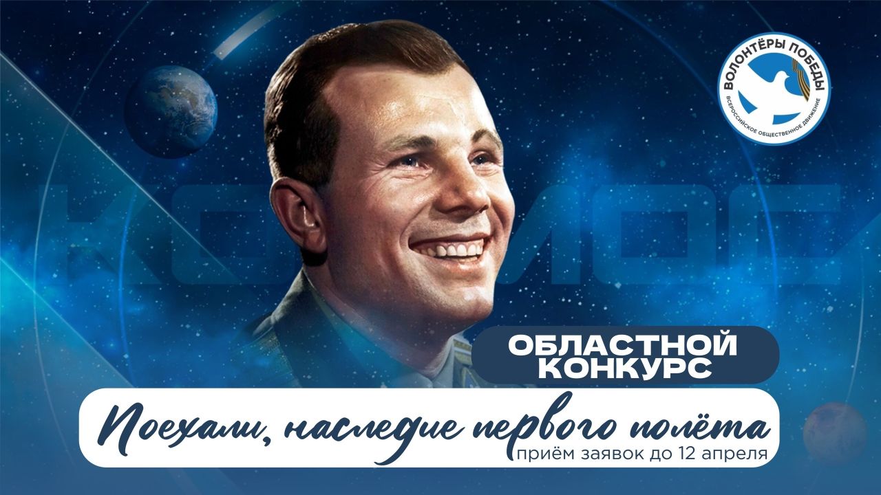 В год 65-летия со дня первого полёта Юрия Алексеевича Гагарина в космос Волонтёры Победы запускают областной конкурс творческих работ «Поехали, наследие первого полёта».
