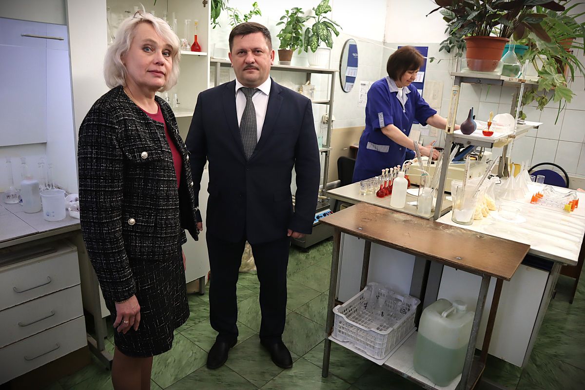 Генеральный директор предприятия Елена Павловна Романова подробно рассказала Николаю Александровичу о тонкостях технологического процесса, этапах контроля качества сырья и готовой продукции, а также о планах по дальнейшему развитию мощностей.