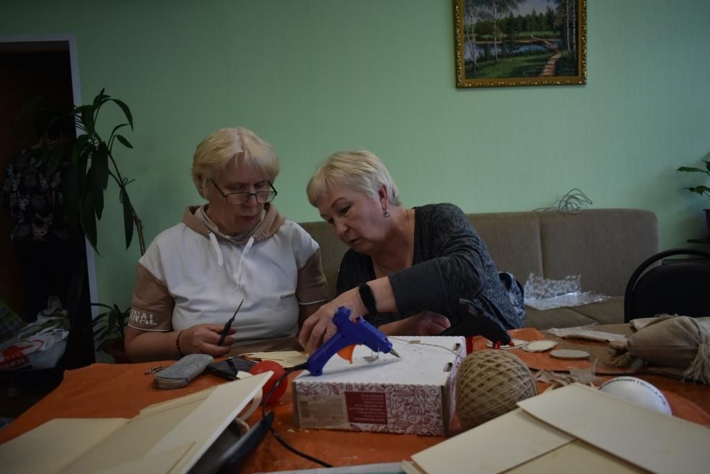 Остальные участники занимались в творческой студии «Декупаж», там они развивают художественные навыки и готовят работы к областной ярмарке, декорируя сувениры из подручного материала. Совместная творческая деятельность служит укреплению социальных связей и повышает эмоциональный комфорт участников.
