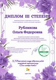 Рубликова Ольга Федоровна в номинации «Бумага и декоративные изделия из неё (техника скрапбукинг, декупаж, аппликация, вырезание)» заняла 3 место. Ольга Федоровна представила яркую аппликацию на тему «Сказки А.С. Пушкина».