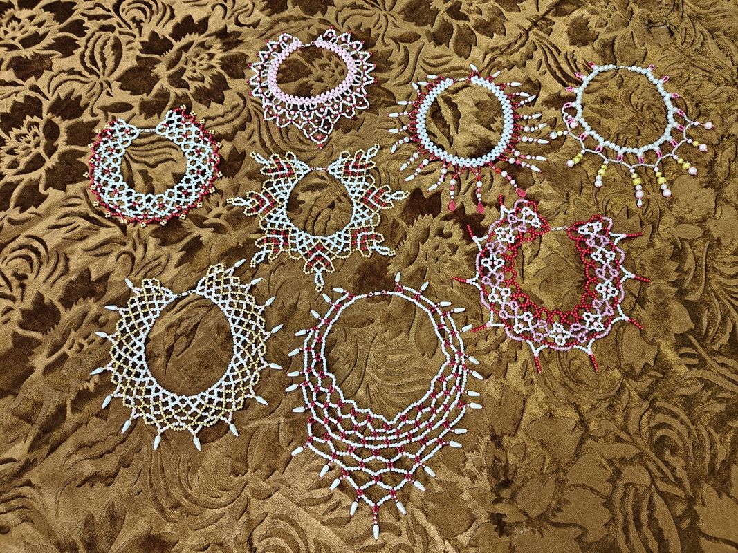Белай Татьяна Евгеньевна заняла 2 место в номинации «Бисер (вышивка, изделия из бисера)», представив на конкурс украшения в виде колье, выполненные в технике бисероплетения.
