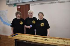 Адаптированный «Шаффлборд». Команды забивали шайбы, имитируя хоккейные броски. Игра тренировала точность и тактическое мышление.