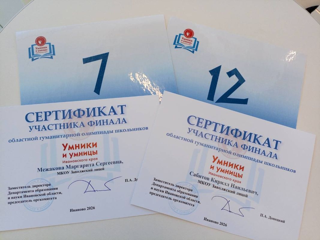 Поздравляем Маргариту Межакову, ученицу 10 "А" класса Заволжского лицея, она стала Призером областной гуманитарной олимпиады школьников «Умники и умницы Ивановского края»!