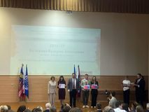 Наставнику - Марии Алексеевне вручили благодарственные письма за подготовку победителя и призеров Олимпиады.