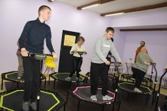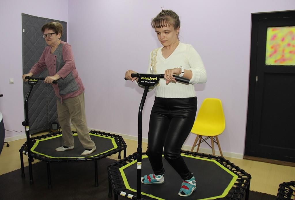 Затем, инструктор Екатерина Ваганова провела для гостей фитнес-тренировку, где каждый смог попробовать себя в джампинге на мини-батутах. Новые, необычные тренажеры вызвали неподдельный интерес. Особенно ребятам понравились упражнения, направленные на развитие равновесия и координации движений.