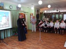 Чтение стихов чередовалось с живым песнопением в исполнении хора Крестовоздвиженского храма в составе О.В. Шерстюк, О.Е. Проворовой, Н.Н. Клименковой, Г.К. Макиной, Г.Н. Лебедевой и М.Ю. Фоминых. Эта необыкновенно красивая музыка – «Заступница», «Молитва пролию», «Лампадка» и др. - заставила трепетать сердца даже тех, кто пока далек от духовной жизни. А исполнение Михаилом песен под гитару о блаженном Николеньке, о войне, которая для одних – горе, а для других – нажива, было так же прекрасно и вызвало благодарные аплодисменты зала.