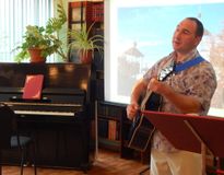 23 мая в Заволжской библиотеке состоялся духовно-поэтический вечер «Храм моей души», приуроченный к Дню славянской письменности и культуры. Вдохновителем и автором мероприятия стал талантливый человек, наш земляк М.Ю. Фоминых. Михаил пишет стихи, сочиняет музыку, исполняет свои произведения под гитару, а с 2002 года поет в Крестовоздвиженском храме, считая это послушание наиважнейшим достижением своей жизни.
