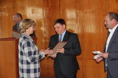 О.А.Сенова, заместитель главы администрации Заволжского муниципального района по финансам и экономической политике, вместе с А.В.Предтеченским, главой Заволжского городского поселения, и А.А.Писчасовым, заместителем главы администрации Заволжского городского поселения, начальником Управления ЖКХ, поздравили работников ООО «Заволжский химический завод» и ООО «Кеметсорб» с профессиональным праздником.