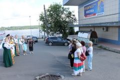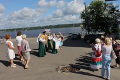Кинешма встречала делегацию из Заволжска, как дорогих гостей в красочных костюмах с хлебом солью под задорную песню. Гостей приветствовала директор Кинешемского комплексного Центра социального обслуживания И.В. Панкратова. Она представила активных участниц Кинешемских досуговых объединений, которые будут поэтапно проводить экскурсионную программу «Волжский променад».