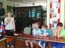 Волонтеры молодежного центра «Эхо» и юные читатели познакомились с историей возникновения флага, узнали, что означают цвета триколора, из каких составных частей он состоит, посмотрели видеоролики. Библиограф О.С. Чинченко также рассказала о книгах на выставке, посвящённой этой дате, и раздала гостям закладки.