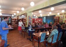 Ведущие встречи Н.В. Петриченко и Т.В. Воронова познакомили аудиторию с многогранностью дарований Михаила, проследили его творческий путь и с помощью видеоряда отметили его активное сотрудничество с библиотекой.