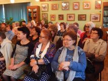 И вот на сцену одна за другой выходили удивительные женщины, радуя зал своими талантами и увлечениями. Н.И. Дудина исполнила любимые всеми песни и даже частушки под балалайку. Н.Г. Холодова, известная в городе рукодельница, представила коллекцию вязаных изделий, которую продемонстрировали сотрудницы библиотеки. Поклонница литературы и поэзии Г.Ф. Елисеева покорила всех художественным чтением стихов М. Лермонтова, К. Бальмонта и Н. Рубцова. Цветовод Т.Г. Торопова представила свои неповторимые фотоработы, которые зрители увидели на большом экране под музыку и получили массу незабываемых эмоций. Краевед, автор книг О.Д. Телкова, как всегда, увлекла зал рассказом об удивительных людях, прославивших наш город. Например, Ольге Дмитриевне ведущие посвятили такие слова: