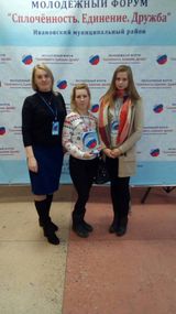 16 ноября 2017г. в Ивановском районном Доме культуры с. Чернореченский прошел молодежный форум «Сплоченность. Единение. Дружба». Организаторами данного мероприятия выступили администрация Ивановского муниципального района. Программа включала в себя: презентацию национальных объединений, проведение этнографический диктанта. Работало несколько тематических площадок: пути снижения конфликтности в молодёжной среде; театр как инструмент продвижения межнациональных культур; межкультурный диалог «Коммуникации разных национальностей»; формирование молодежного информационного пространства по межнациональному согласию и другие. В мероприятии приняло участие более 150 человек со всех районов области. От Заволжского муниципального района в форуме приняли участие специалисты по работе с молодежью В.А.Тихомирова ,К.С. Хайдина , Е.С.Круженина.