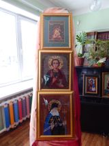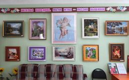 Войдя в зал вы сразу же обратите внимание на центральную картину - дивного ангела с венком нежных цветов. Замечательно выписанные черты, приглушённые пастельные тона - всё это вызывает умиление и уравновешивает душевный настрой.