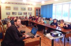 16 февраля Заволжская городская библиотека организовала для своих постоянных друзей и партнеров – ребят и их педагогов художественного отделения ДШИ – встречу с семьей о. Дионисия, священнослужителя Свято-Богоявленского храма (кстати, в его семье двое маленьких детей). О. Дионисий уже был участником нескольких библиотечных мероприятий.