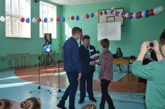 Председатель территориальной избирательной комиссии Заволжского муниципального района М.В. Яковлев наградил памятными подарками обучающихся Заволжского лицея – победителей и призеров прошедшей в марте викторины по избирательному праву.