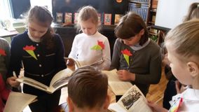 Библиотекари Н.А. Харина и Е.Н. Гришина предложили лицеистам 2а класса (учитель Р.В. Лебедева) послушать рассказы о войне С. Алексеева «Победа будет за нами» и «Фирменное блюдо», стихи А. Смирнова «Кто был на войне», А. Твардовского «Рассказ танкиста», С. Михалкова «Нет войны». Дети рассказали о своих родных-участниках войны, посмотрели видеоролик «Дети против войны». Затем был проведен мастер-класс по изготовлению лебедя как символа любви и верности в стиле оригами.