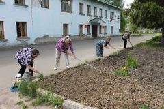 Участники отряда серебряных волонтеров «Искорка добра» разбили цветник у здания районного военкомата на аллее Героев ВОВ. Пришлось приложить немало усилий, чтобы взрыхлить землю, посадить рассаду бархатцев и полить клумбу.