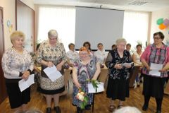Участники клуба досуга и общения «Надежда», исполнившие роль подопечных в конкурсе «Проблемная ситуация», поздравили сотрудников Центра с профессиональным праздником исполнением частушек и стихов собственного сочинения.