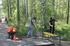 6 день работы: «Экологический десант в городской парк». Участники отряда «серебряных» волонтеров «Искорка добра» и ребята – волонтеры из молодежного Центра в этот день очистили от мусора центральную аллею городского парка и асфальтовую дорожку вдоль парка, собрав при этом 15 больших мешков мусора.