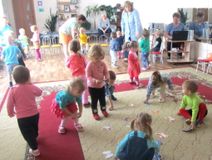 Через игру дети показали, чем они занимались летом, вспомнили все цвета лета. Имитировали писк комара, жужжание мухи и другие летние звуки, особенно им удалось кваканье лягушек. Еще они с азартом «ловили» бумажных бабочек, играли в мяч, сумели разгадать загадки про речку, пчелку, одуванчик. В конце исполнили танец птичек и, дружно помахав ручками, сказали: «До свидания, лето! Здравствуй, осень!»