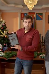 Главный редактор газеты «Авангард» Е.Б.Цветкова вручила диплом главе Заволжского муниципального района Д.Ю.Петрову.