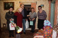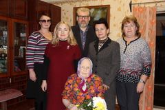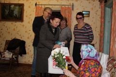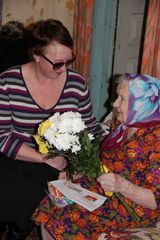 С пожеланиями крепкого здоровья, бодрости духа и долгих лет жизни имениннице вручили цветы, поздравительные открытки, памятные подарки и поздравительное письмо от Президента Российской Федерации В.В.Путина.