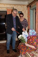 Поздравить юбиляршу приехали глава Заволжского муниципального района Д.Ю.Петров, Т.М.Папахина, инспектор администрации, а также Е.Б.Гладышева, председатель Совета ветеранов, Т.А.Смирнова, специалист Управления пенсионного фонда в Заволжском районе, и Л.А.Афонина, сотрудник Центра социального обслуживания.