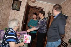 В юбилейный день именинницу пришли поздравить Денис Петров, глава Заволжского муниципального района, Татьяна Папахина, специалист администрации Заволжского городского поселения и И.В.Кувичинская, представитель Пенсионного фонда. Вместе с поздравлениями и подарками, юбилярше вручили письмо от Президента РФ Владимира Путина.