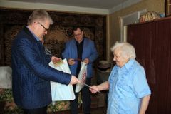 Глава Заволжского муниципального района Денис Петров поздравил именинницу, пожелав ей здоровья, и вручил письмо Президента Российской Федерации.