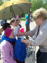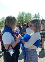 Горожане с трепетом принимали от волонтёров синие платочки, образ которых увековечен в одноимённой песне Клавдии Шульженко. С этой песней бойцы шли в бой, защищая нашу Родину.