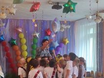 После каждого выступления дошкольники выпускали на небосклон шарик в виде звезды, на которой были приделаны маленькие звёздочки, соответствующие количеству участников.
