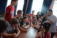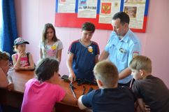 18 июня 2019 года сотрудники ОП №8 МО МВД РФ «Кинешемский» пригласили на экскурсию в отделение полиции ребят, посещающих лагерь дневного пребывания при ОБУСО «Заволжский ЦСО» «Смайлики», чтобы наглядно и на практике познакомить их с непростой, но интересной работой полицейских.