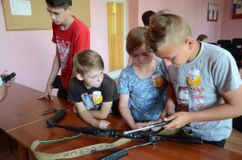 Специалистом группы тыла (по вооружению) ОП №8 Ю.А. Вороновым была организована демонстрация вооружения и спецсредств, состоящих на учете в отделении, в ходе которой ребята смогли примерить на себе бронежилет и каску, и даже подержать в руках оружие.