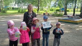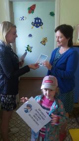 Ребята приняли участие в игре-беседе «Светофорчик», во время которой вспомнили дорожные знаки и правила дорожного движения. Вера Андреевна напомнила родителям дошкольников, что при перевозке детей необходимо использовать детские удерживающие устройства - автолюлки, автокресла. Ребятам и их родителям были вручены «Памятки юного пешехода».