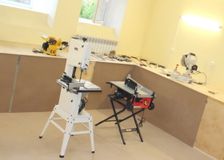 Закупили оборудование: ленточнопильный станок, циркулярные пилы, шлифовальную машину, фрезы, дрель, шуроповёрт, рейсмусовый станок, стружкоотсос.