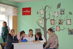 В зоне коворкинга в это время проходила викторина между двумя школьными командами.