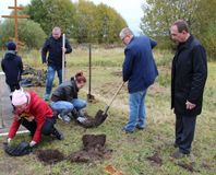 Накануне глава муниципалитета Денис Петров вместе с учениками Воздвиженской школы, представителями МВД города Кинешмы по периметру памятника у деревни Емельянова посадили саженцы клёнов.