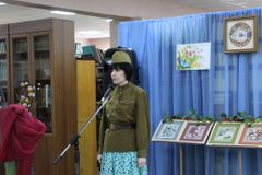 В этот день организаторы мероприятия Н.В. Петриченко и Т.В. Воронова начали встречу с главной темы нынешнего года – юбилея великой Победы. Инсценировка по повести Бориса Васильева «А зори здесь тихие…» напомнила присутствующим о девушках на войне, которые ценой своей жизни дали отпор обученным немецким разведчикам. Женю Комелькову и Риту Осянину трогательно и проникновенно сыграли библиотекари О.А. Трофимова и М.Н. Смирнова.