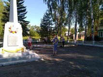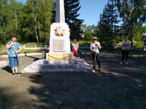 В ходе мероприятия была обкошена и убрана трава и мусор на газонах, подметены дорожки на территории обелиска.