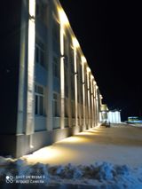 Множество светильников обрамляют школу по всему периметру, подсвечивая грани здания и создавая динамичный графический световой рисунок. Такой завершающий шаг добавил красоты и уюта зданию школы.