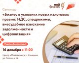 Центр «Мой бизнес» приглашает предпринимателей на бесплатный семинар: «Бизнес в условиях новых налоговых правил: НДС, спецрежимы, внесудебное взыскание задолженности и цифровизация»